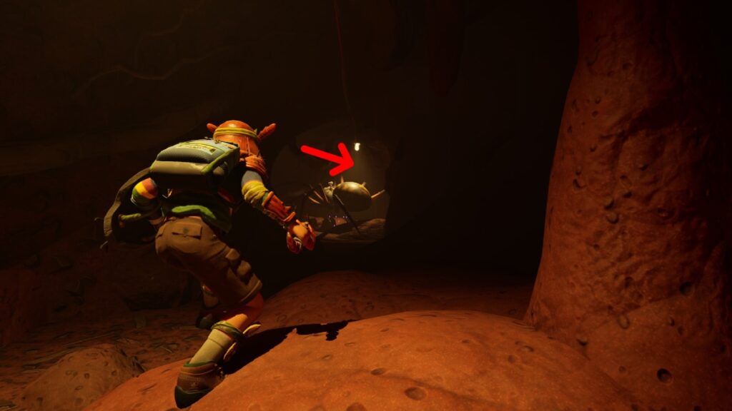 Keep following the cable until you spot a purple flashing light. This light is bad news because it is an O.R.C. Weaver. Yes, mind-controlled insects are back. We don’t recommend facing this creature. With the armor you have, you’ll get defeated with one hit. Instead, you can use the “cheese tactic” we discovered.