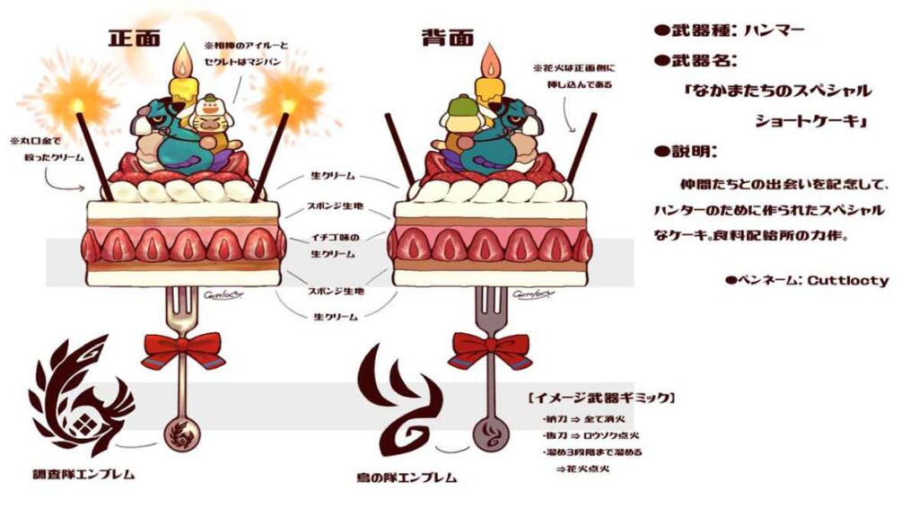 A total of 20 fanmade weapon designs are in the running; unfortunately they don’t cover all weapon types. They only include Great Sword, Hammer, Lance, Long Sword, Dual Blades, Hunting Horn, Gunlance, Switch Axe, Charge Blade, and Insect Glaive. Ranged users or Gunners will have to sit back for now.